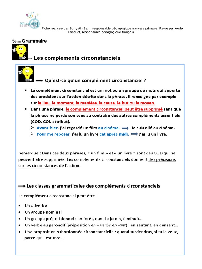 | Nom Par Eric Cm2 Exercices Complements Circonstanciels Pdf Cours Pdf |